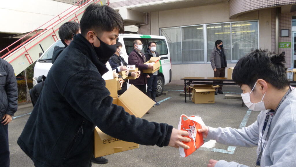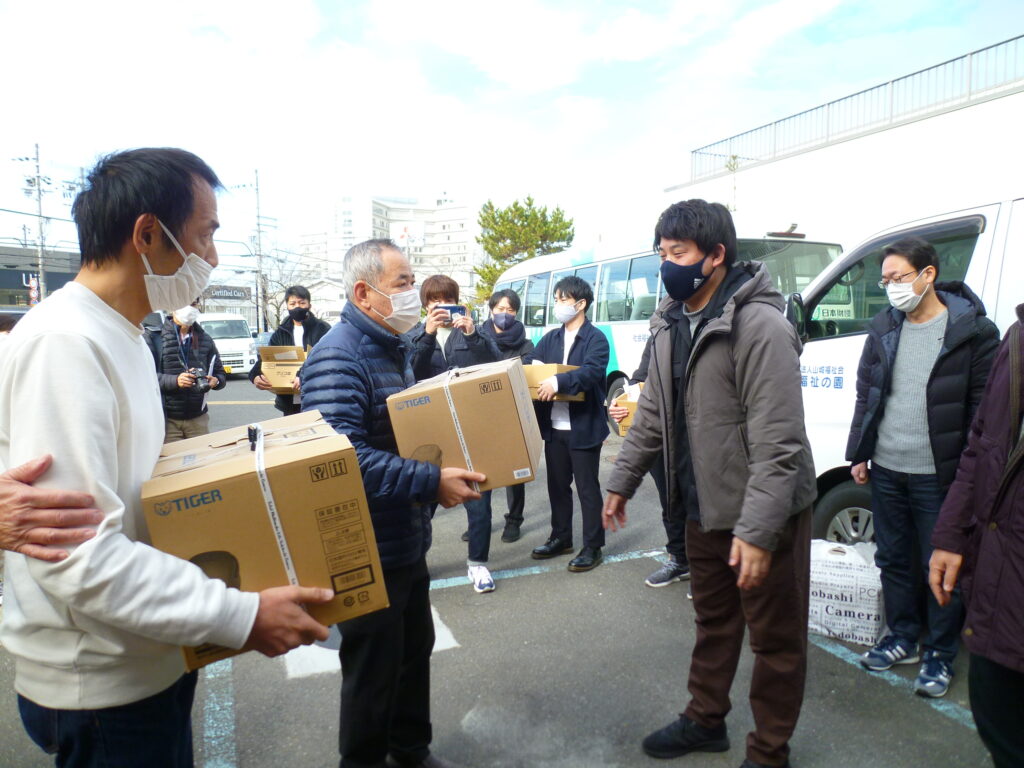 毎年「わくわくまつり」の模擬店で焼きそばをご提供していただいましたが、今年もコロナ禍のため、出店ができなかったので、代わりに何かご利用者様に還元できないかとお話をいただきました。以前から給食やお弁当事業で使っていた炊飯器が老朽化していたので、新しい炊飯器2台を寄贈していただきました。ご利用者様一人ひとりにお菓子もいただきました。