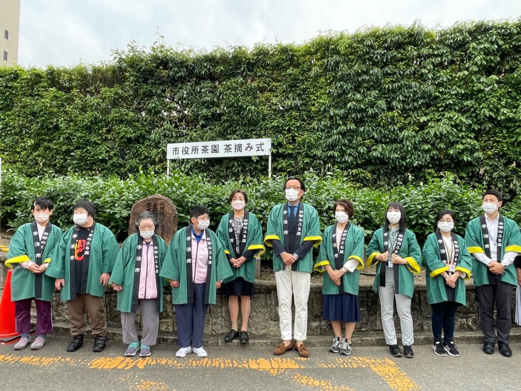 宇治市役所茶園で「茶摘み式」が行われました。ご利用者さま2名が参加しました。