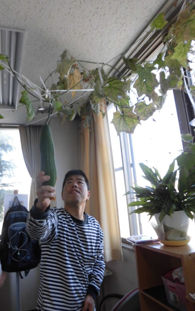 なずな班では、なんと室内でこんなにも大きな「へちま」が育ちました!人工授粉でここまで大きくなるのですね。びっくりです!