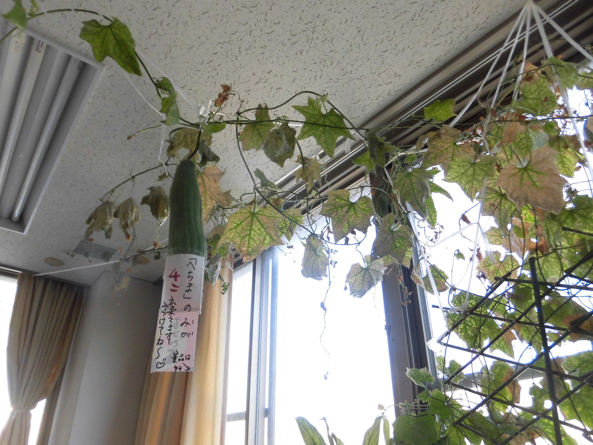 なずな班では、なんと室内でこんなにも大きな「へちま」が育ちました!人工授粉でここまで大きくなるのですね。びっくりです!