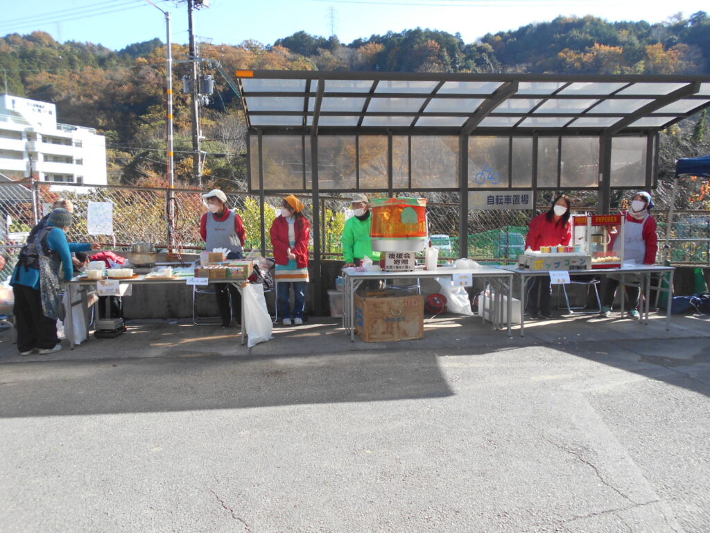 飲食物は綿菓子とポップコーンは無料、ぜんざいとジュースを販売しました。