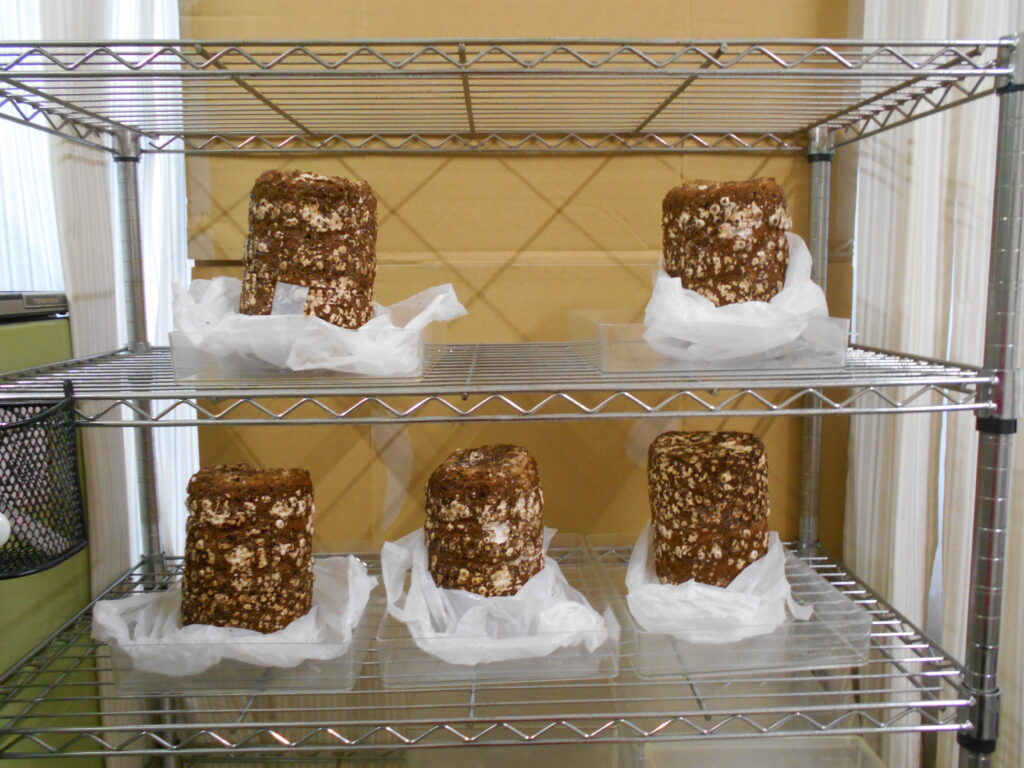 椎茸の菌床ブロックを十分な水分と一定の温度下で生育・収穫を目指します。