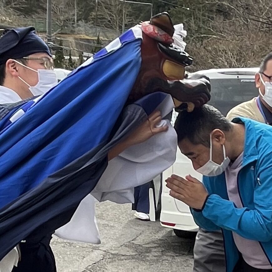 希望者は獅子舞に頭を噛んでいただき、家内安全と無病息災をお願いしました。