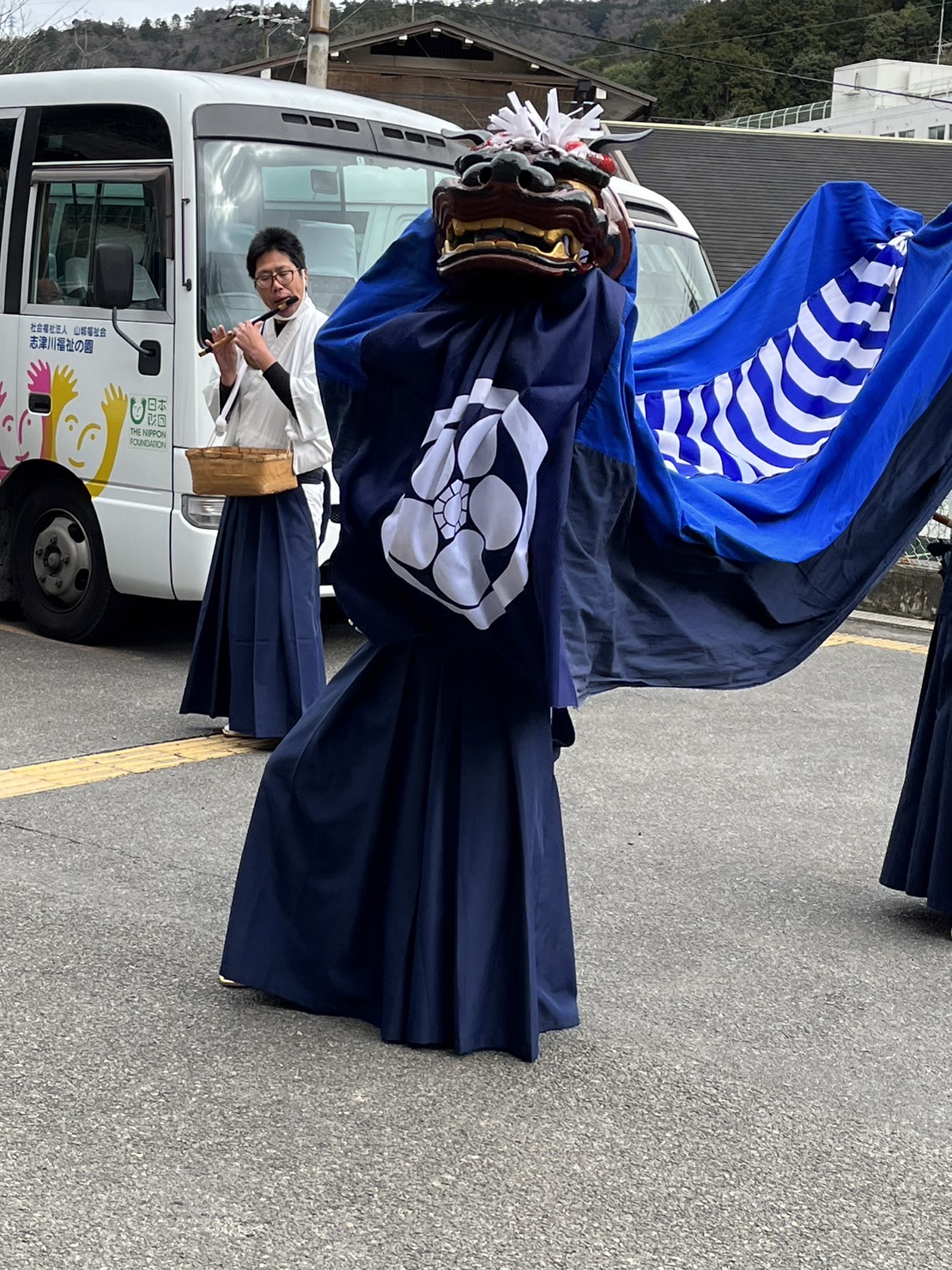 さて、当園では16日に伊勢大神楽が来られ、獅子舞を披露して頂きました。