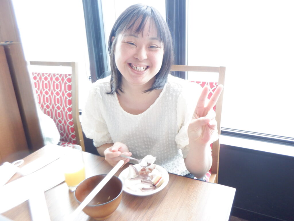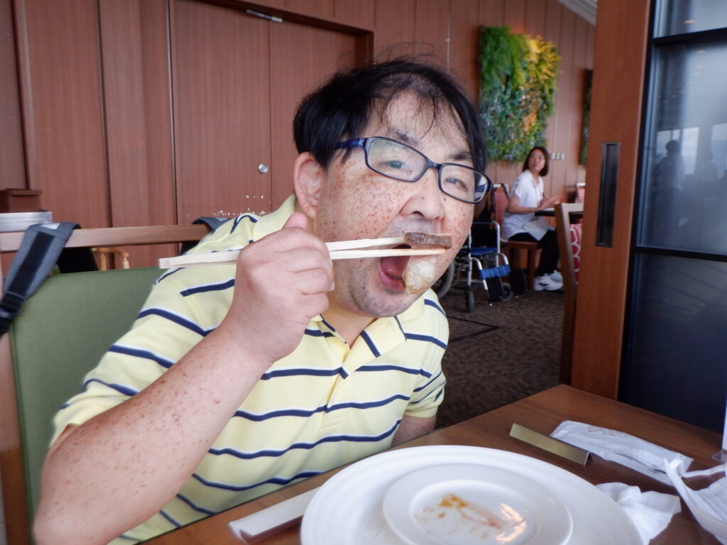 大津プリンスホテルの展望レストランからの琵琶湖や比叡の山々の景色がすばらしかったです。皆さんの食べっぷりも良く、最後のスイーツ類も職員の心配をよそに、甘い物は別腹とばかりにたくさんの種類のケーキをとる人が多くびっくりしました。