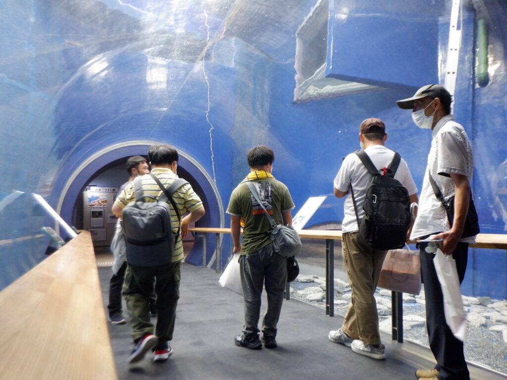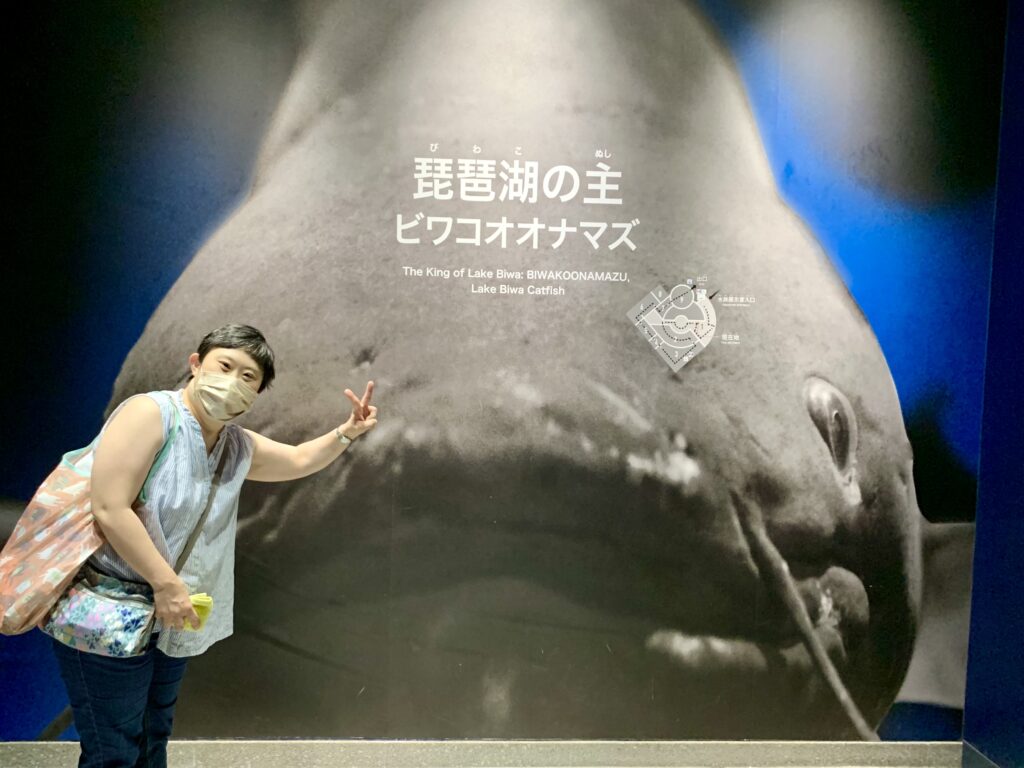 びわこのちからの博物館(琵琶湖博物館)では水中トンネルが点検の為水抜き中でした。琵琶湖固有のたくさんの魚の生きた姿が見られて興味深かったです。