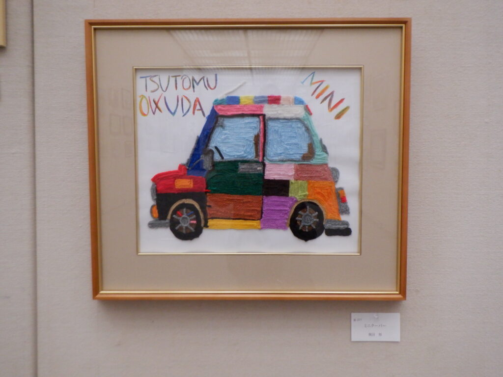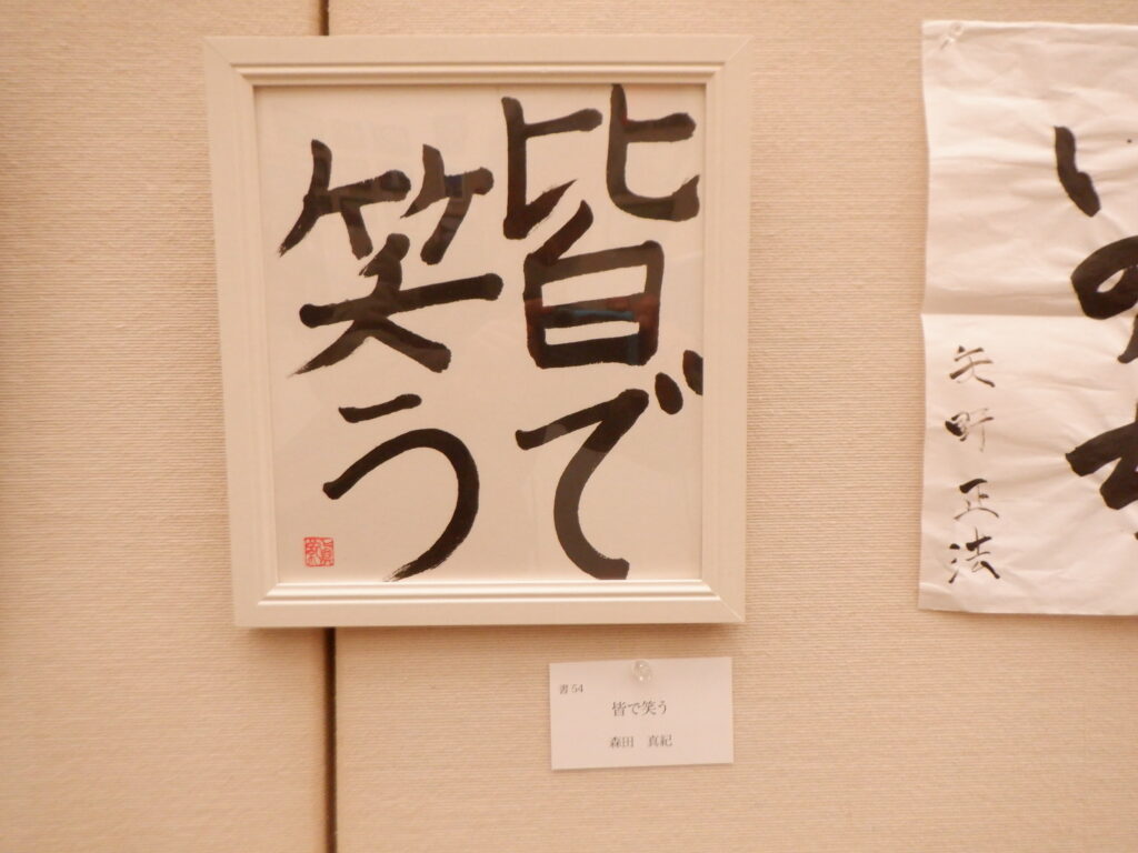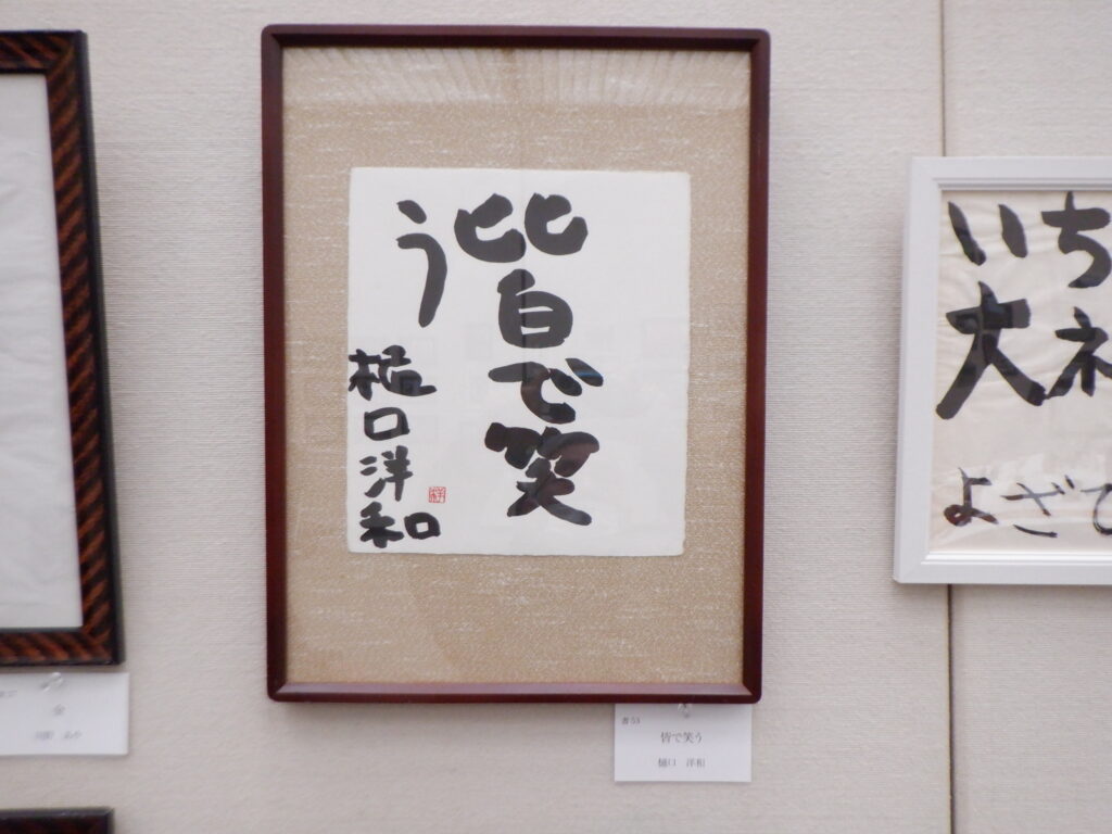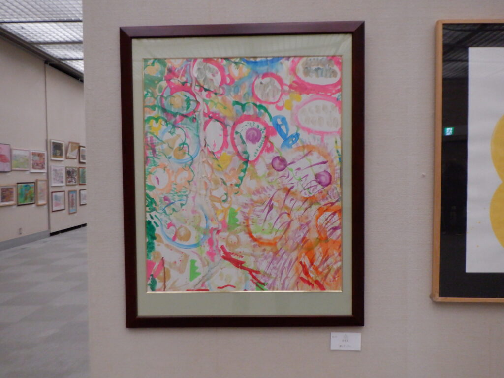 搬出したのが9月で、長い間のお待たせでした。日頃の活動で生み出した自らの作品が展覧会で展示される……。利用者さん達にとって感動的で誇らしいイベントです。写真1点、絵画部門7点、書部門6点、昨年より大幅出展点数アップの14作品でした。会期中に展観できなかった利用者さんの為、後日、班の作業外活動で会場風景(静止画・動画)を見ていただきました。