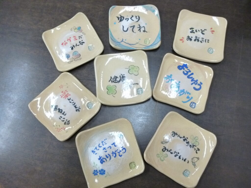 こちらのお皿は、槇島のご利用者さんがメッセージを考えたものをデザインしてくださいました。