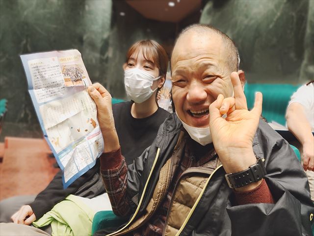 京都知的障碍者福祉施設協議会主催の「コンサートの集い」に招待いただき、文化パルク城陽に行ってきました!広いコンサートホールで吹奏楽団「音楽のとびら」さんの音楽や歌を聴いて様々な音色に驚きと笑顔が見られました。皆さん音楽に合わせて手拍子やダンスで盛り上がりました!
