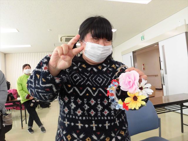 2月、3月の余暇活動室内グループでオリジナルリースを作りました!