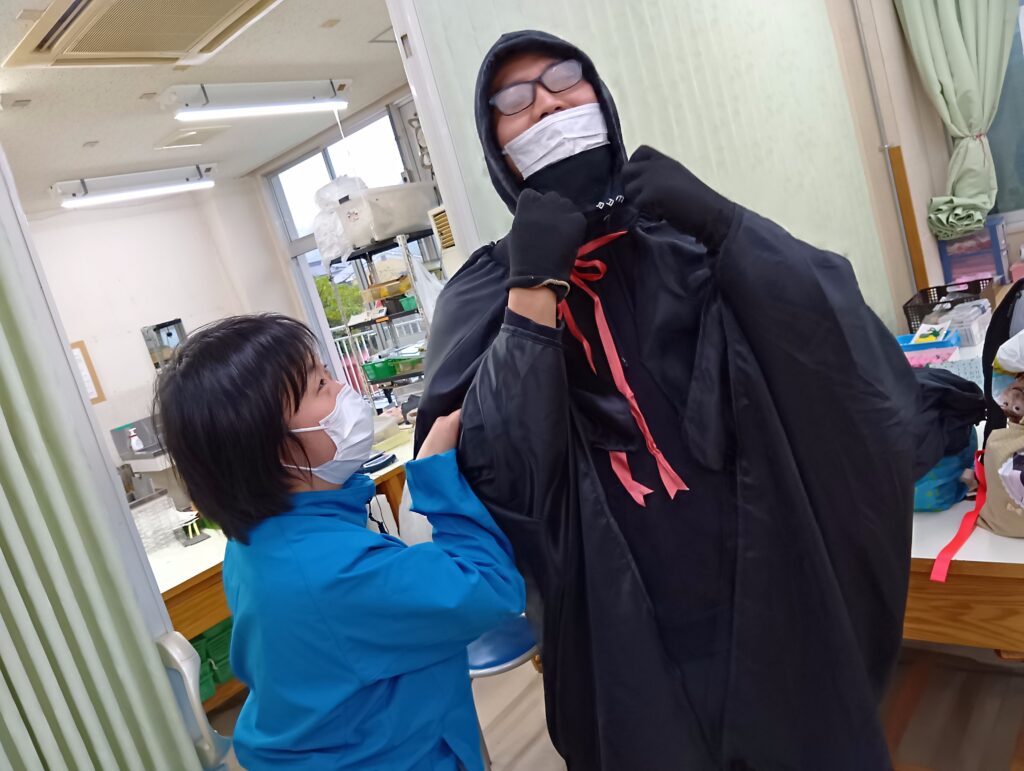 「トリックスター!!」の掛け声とともに、職員も一緒にハロウィンを楽しみました!